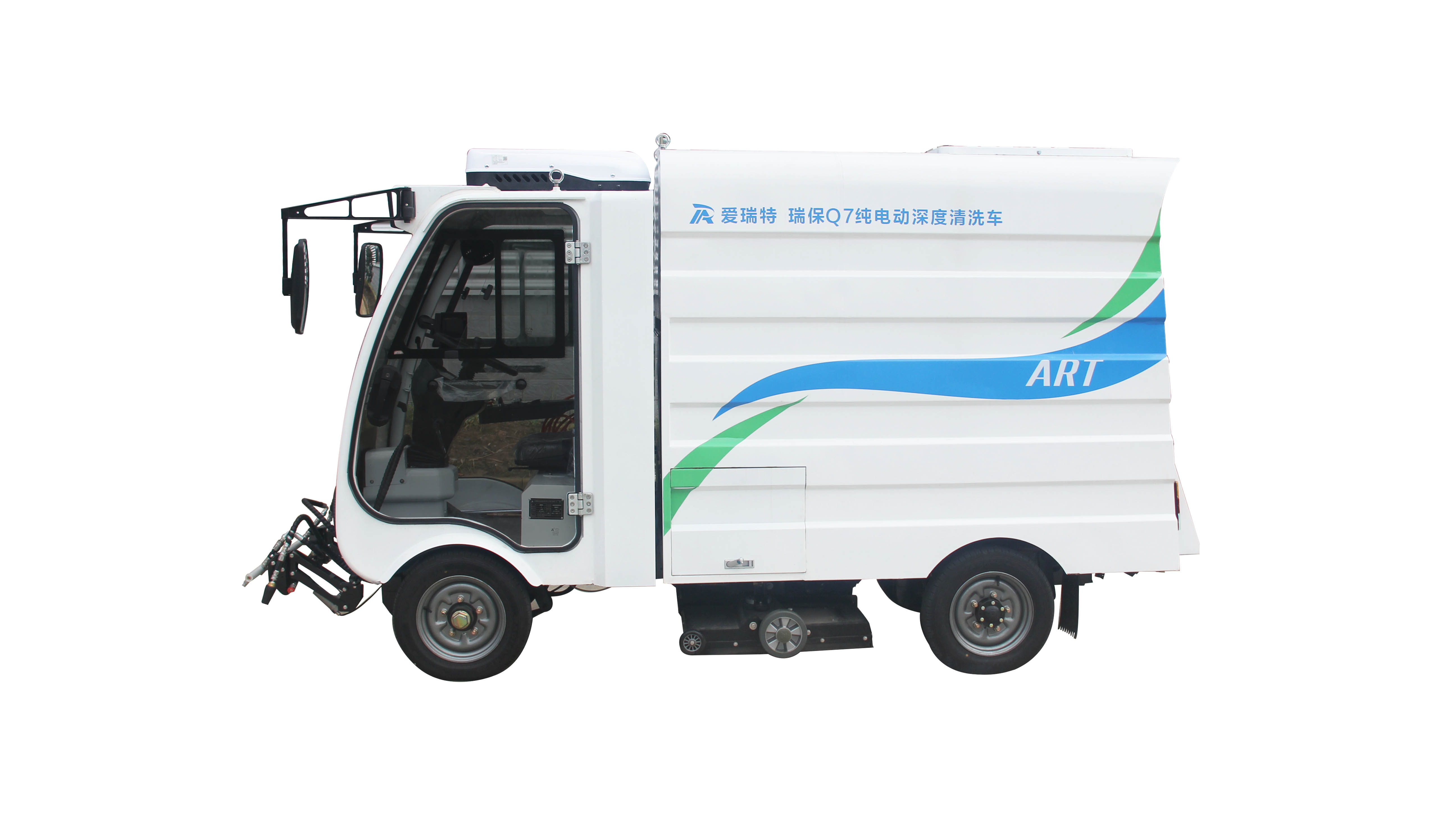 瑞保Q7L純電動深度清洗車主要用于機動車道、非機動車道、人行道、市政園林、廣場等路面的沖洗養護并對污水進行回收。下置左右側沖、高壓清洗盤、吸水耙裝置,前置高壓排沖及多角度沖洗裝置,用于路面、馬路道牙、交通標識線處和塑膠跑道的深度清理。